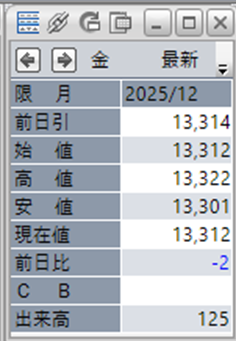 上:大阪取引所 金 2025年12月限 1分足
