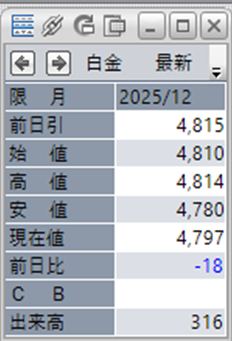 中:大阪取引所 白金 2025年12月限 1分足