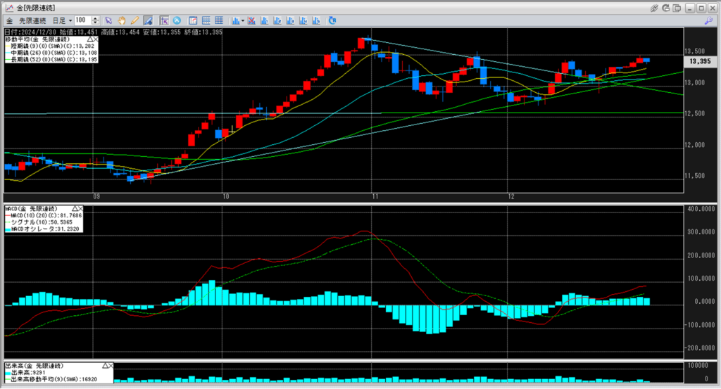 下記に金白金鞘の移動平均線のチャートを貼り付けています。
