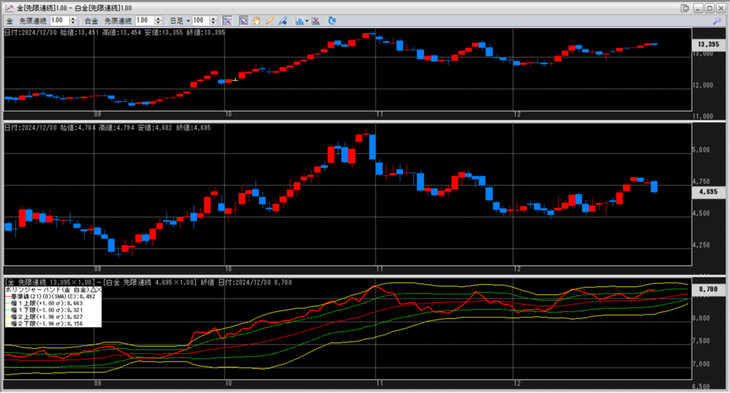 金白金の鞘をボリンジャーバンドで見ていきます。