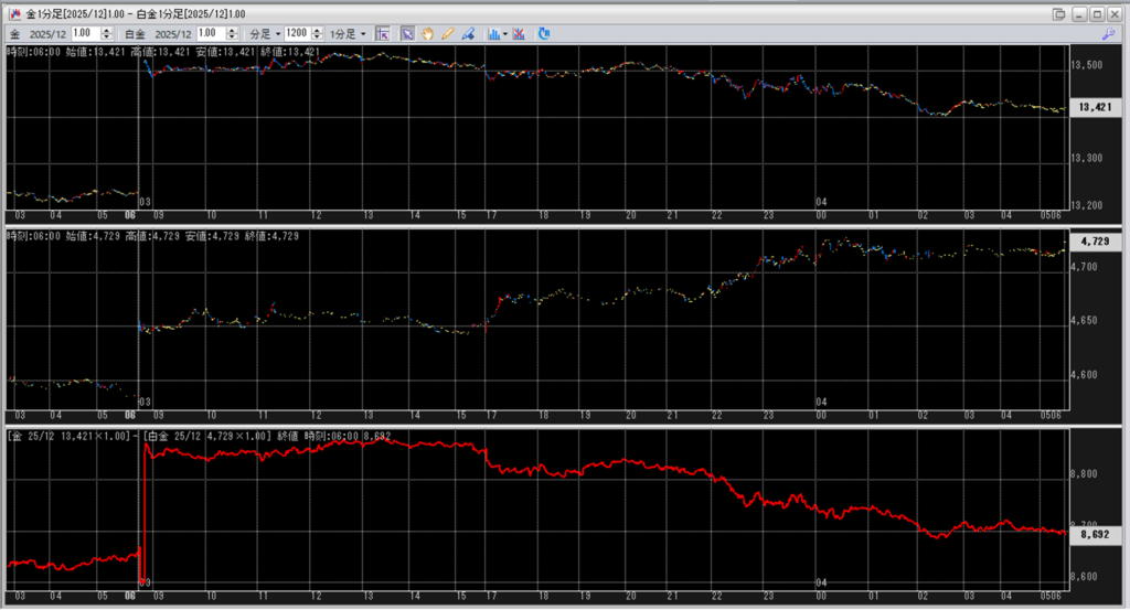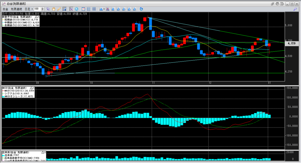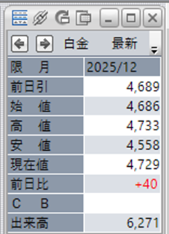 白金単体で見ると、12/30 15:45比で+40円となっております。