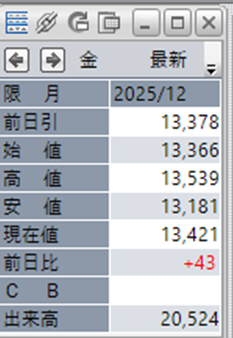 金単体で見ると、12/30 15:45比で+43円となっております。