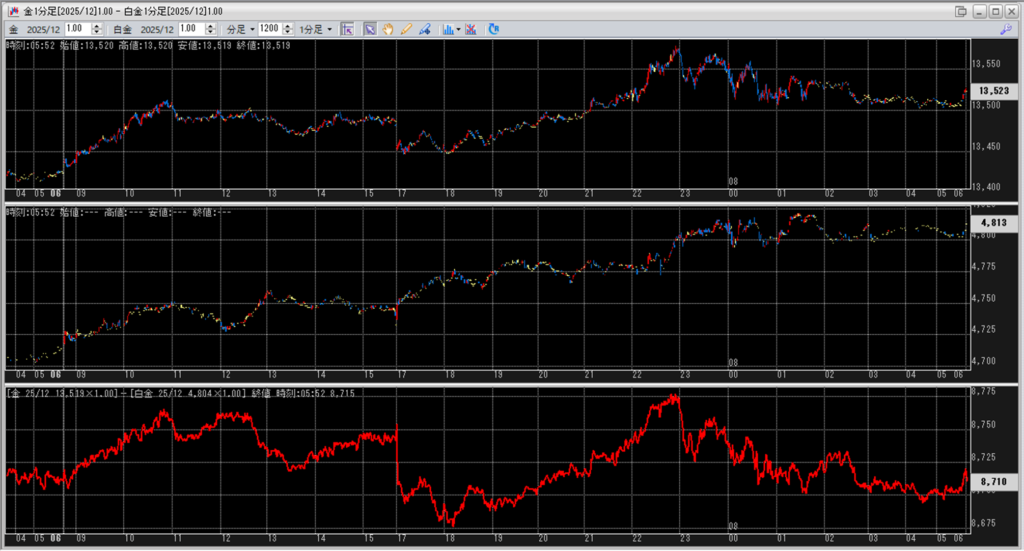下:金白金鞘(金白金の価格差 = 金1グラムの価格 - 白金1グラムの価格)