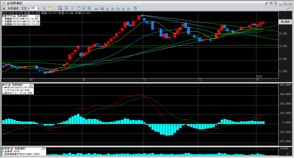 下記に金白金鞘の移動平均線のチャートを貼り付けています。
