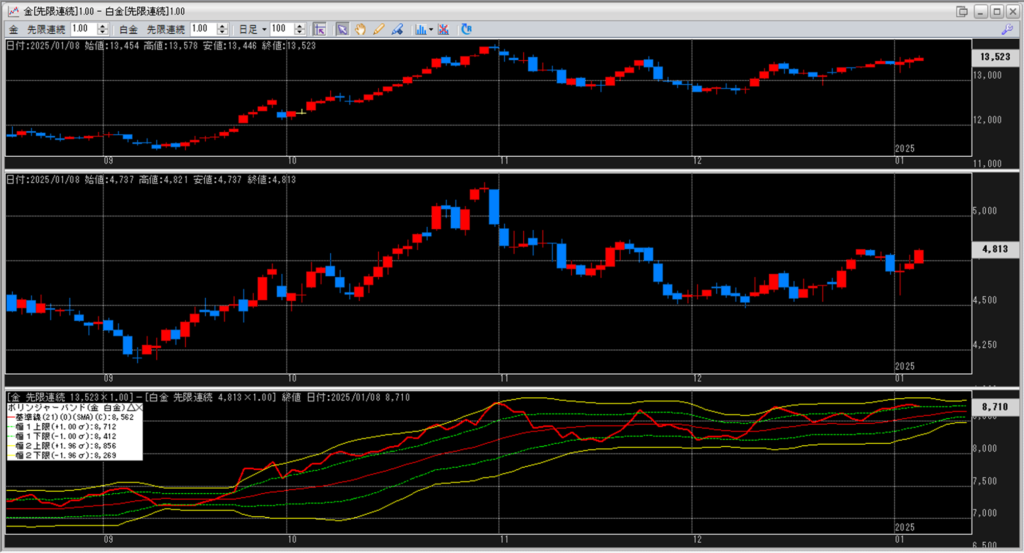 金白金の鞘をボリンジャーバンドで見ていきます。