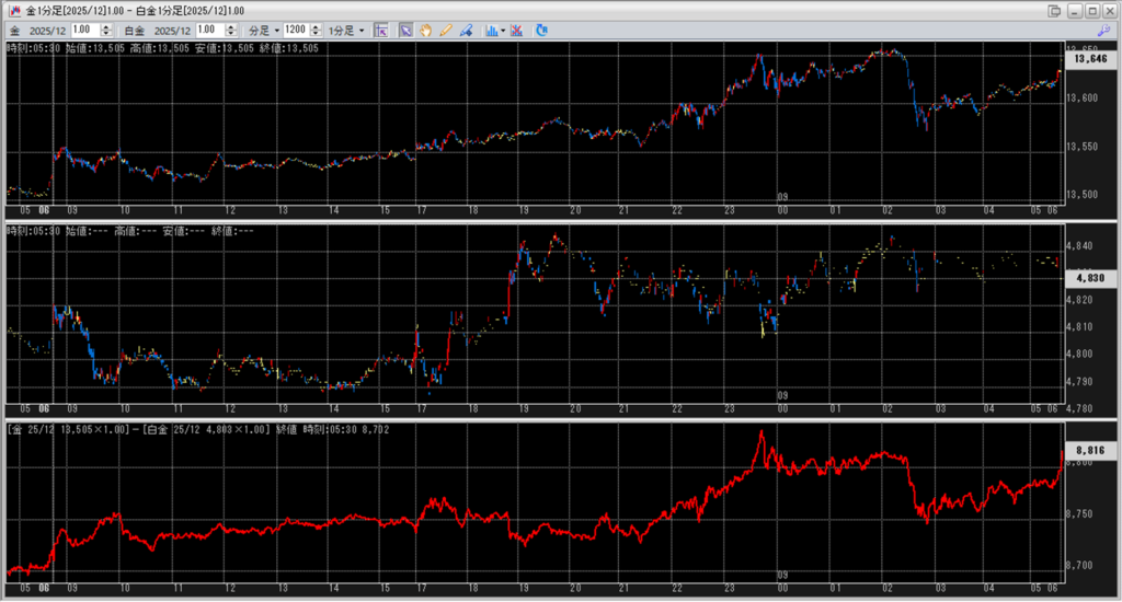 金白金鞘のチャートは、昨日は鞘縮小していましたが、