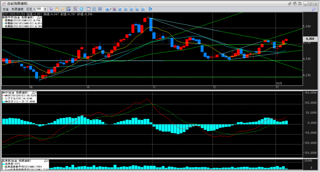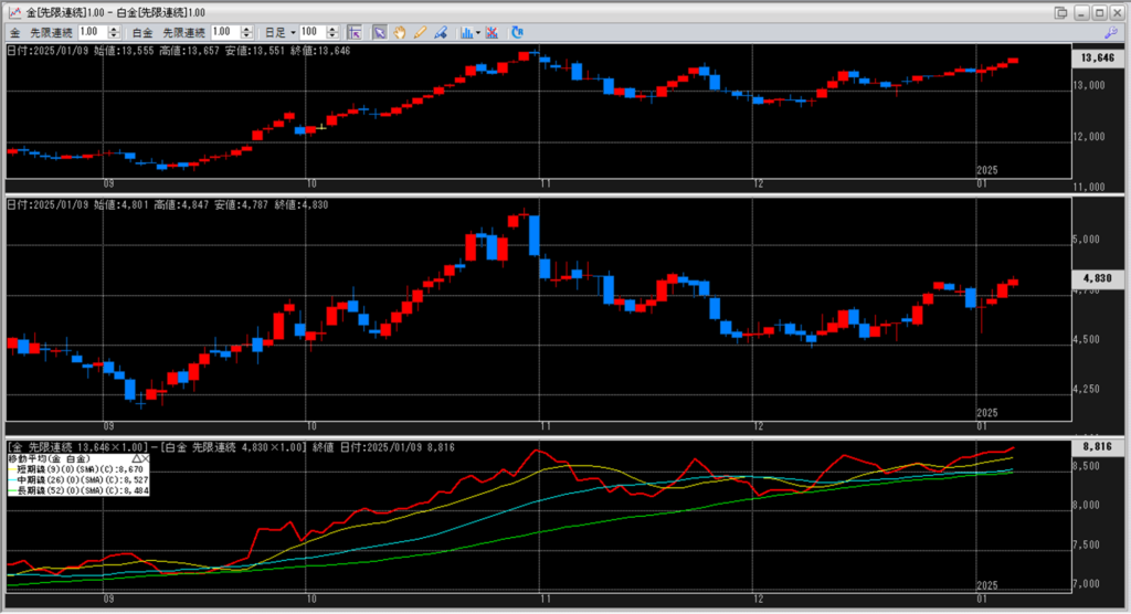 下記に金白金鞘の移動平均線のチャートを貼り付けています。