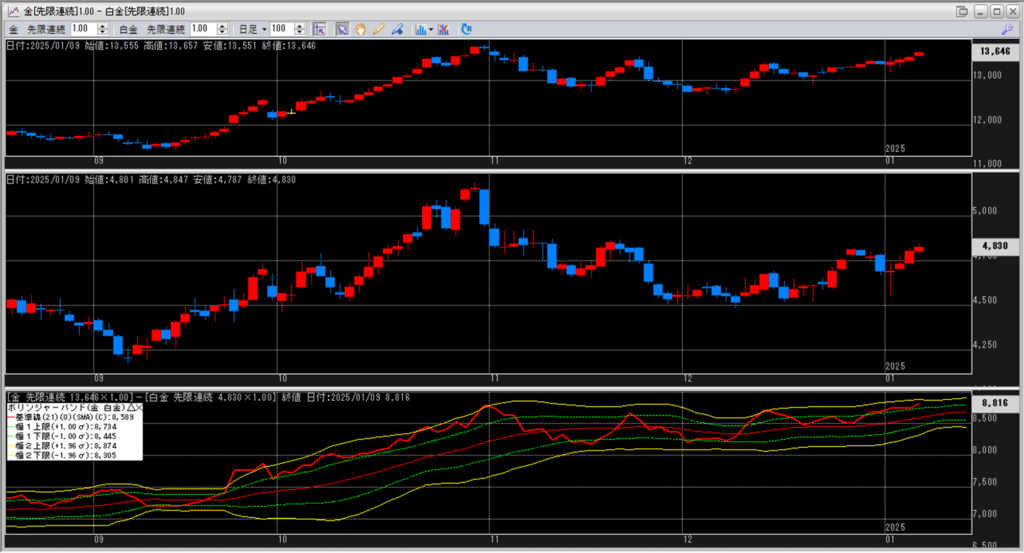金白金の鞘をボリンジャーバンドで見ていきます。