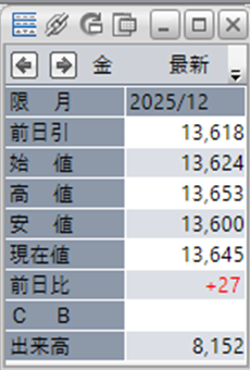 上値13,500円、下値12,500円としたボックス相場の様相になっていました。
