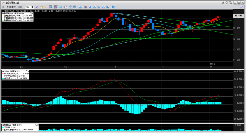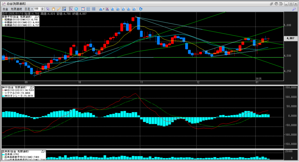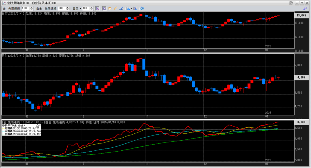 下記に金白金鞘の移動平均線のチャートを貼り付けています。