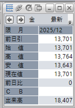 上:大阪取引所 金 2025年12月限 1分足
