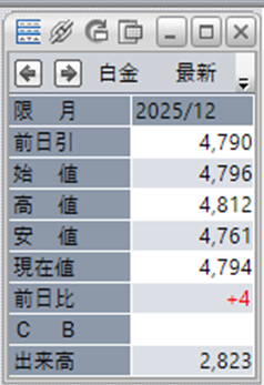 中:大阪取引所 白金 2025年12月限 1分足