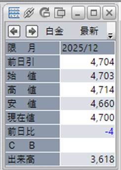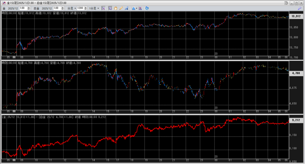 鞘拡大が続く中、鞘拡大の仕掛け金買い1枚-白金売り2枚を1組を建て、