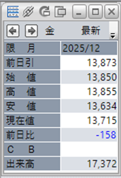 上:大阪取引所 金 2025年12月限 1分足