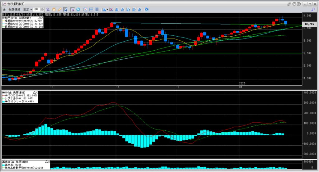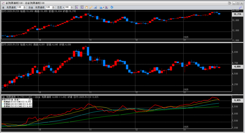 下記に金白金鞘の移動平均線のチャートを貼り付けています。