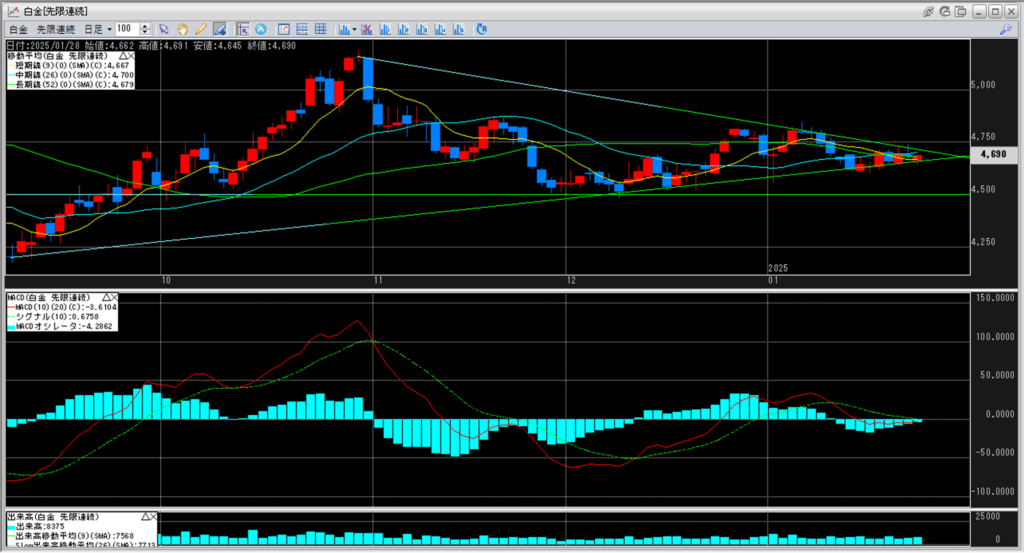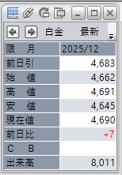 中:大阪取引所 白金 2025年12月限 1分足
