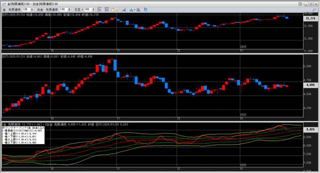 金白金の鞘をボリンジャーバンドで見ていきます。