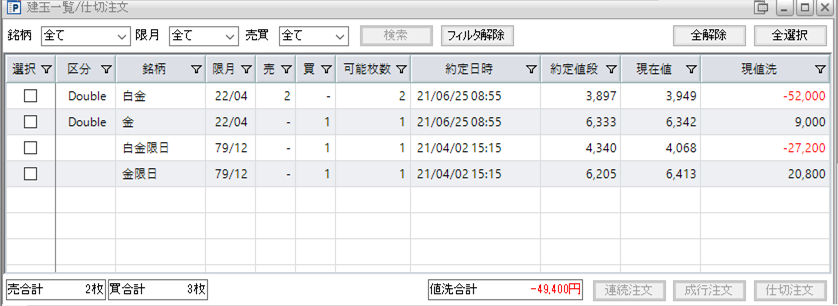 一旦、鞘縮小の仕掛け金売り1枚-白金買い2枚で両建てすべきか。
