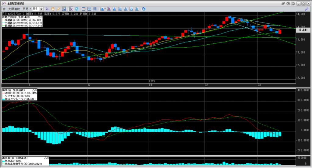 下記に金白金鞘の移動平均線のチャートを貼り付けています。
