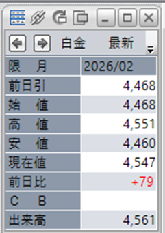 中:大阪取引所 白金 2026年2月限 1分足