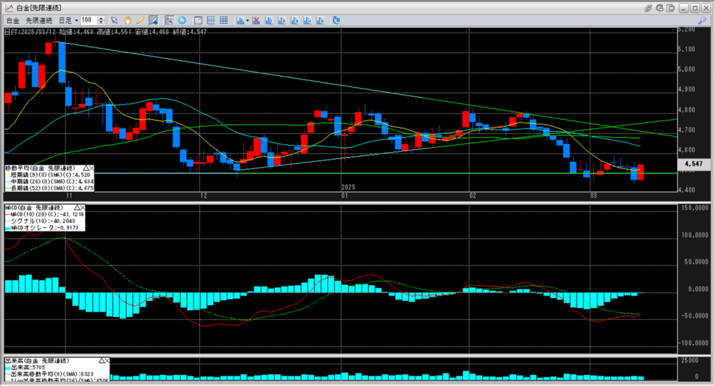 4,500円を挟んで、白金価格は上がったり、下がったりを繰り返しています。