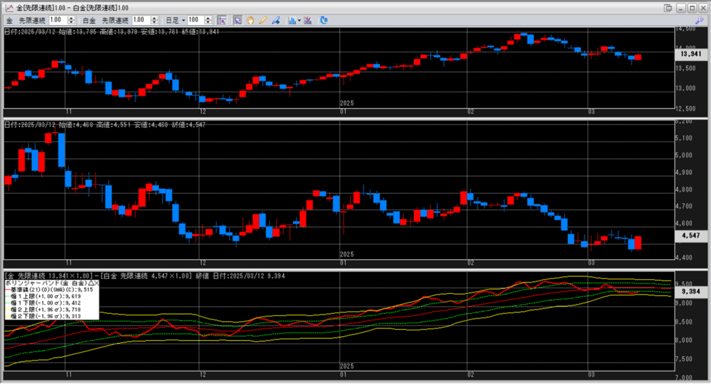 金白金の鞘をボリンジャーバンドで見ていきます。