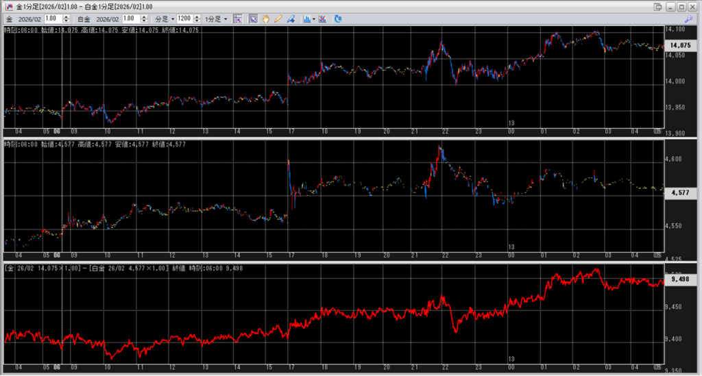 下:金白金鞘(金白金の価格差 = 金1グラムの価格 - 白金1グラムの価格)