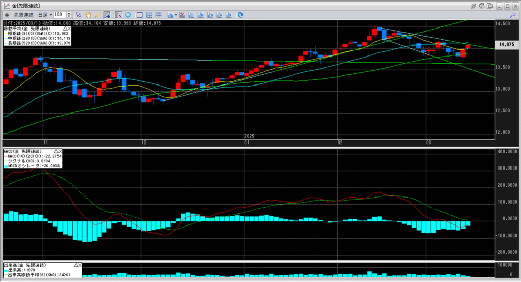 ですが、長期線、短期線を超え、14,000円も超えてきました。