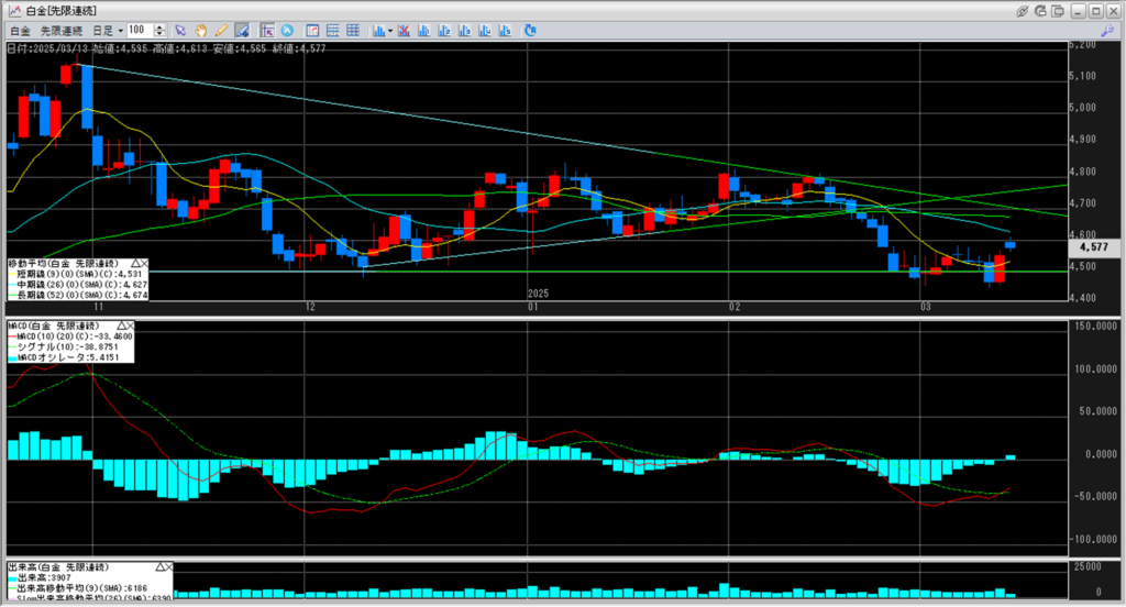 下記に金白金鞘の移動平均線のチャートを貼り付けています。