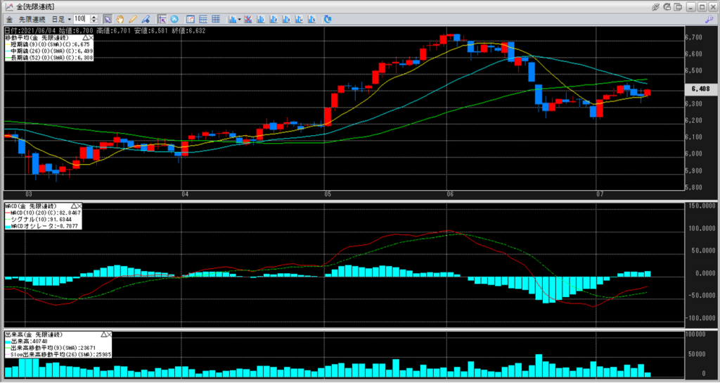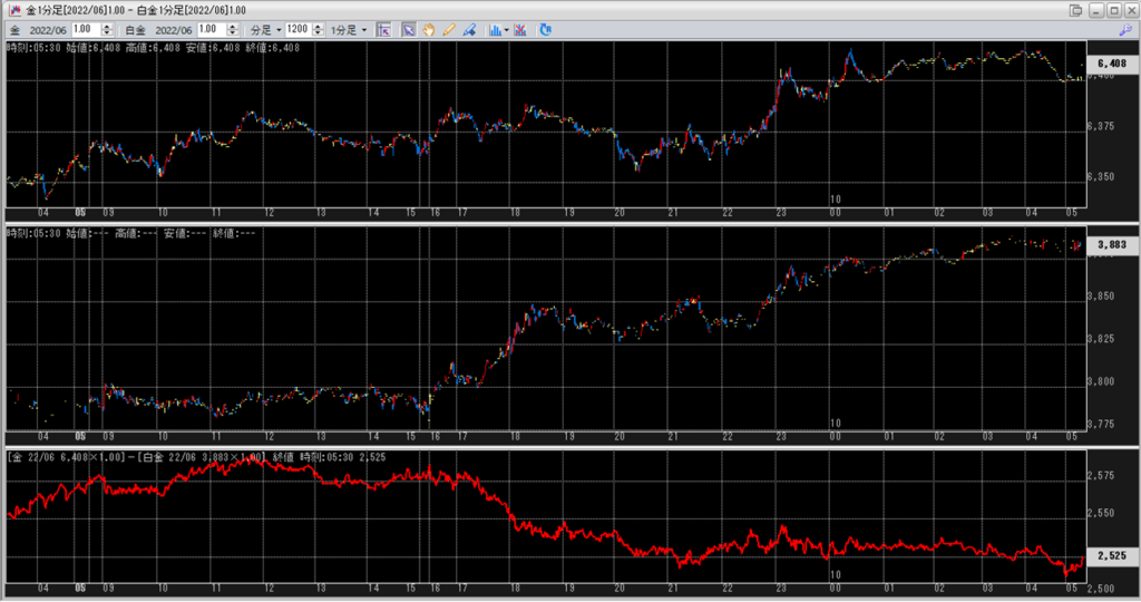 上:大阪取引所 金 2022年6月限 1分足
