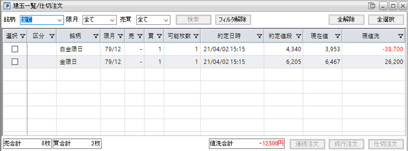 下記が現在の建玉状況になります。