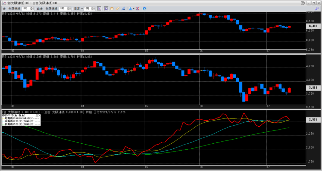金白金の鞘の移動平均を見ていきます。