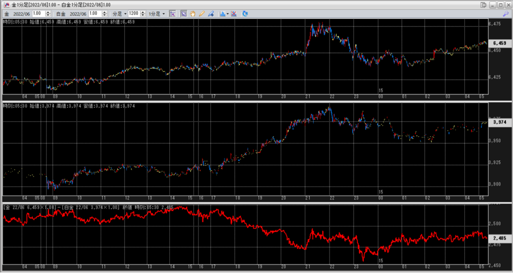 現在、金白金の鞘の値段は基準線2,503円を割ってきています。