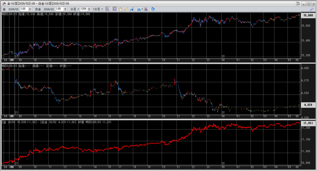 上:大阪取引所 金 2026年2月限 1分足