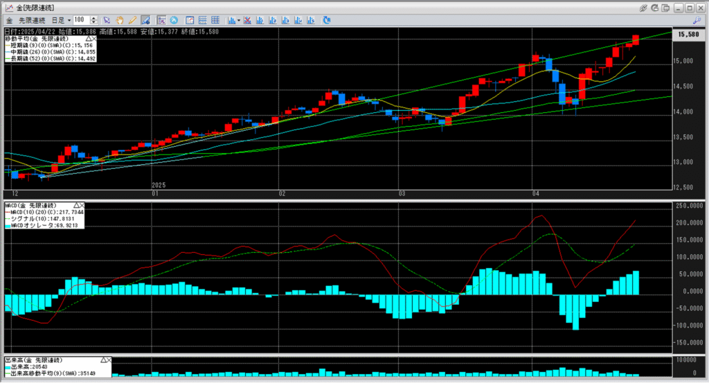 金価格は史上最高値を15,588円と更新してきています。