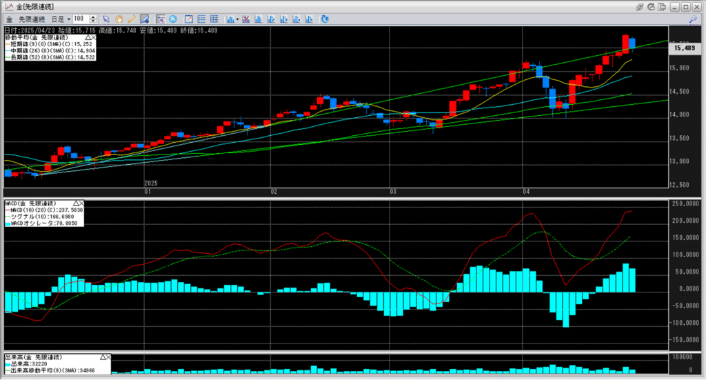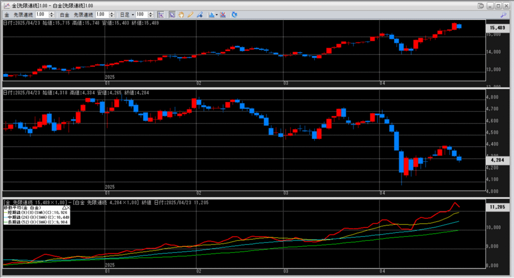 下記に金白金鞘の移動平均線のチャートを貼り付けています。