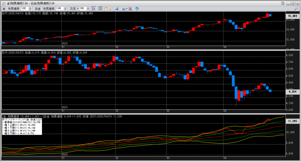 金白金の鞘をボリンジャーバンドで見ていきます。