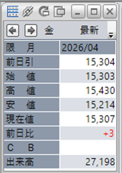 金単体で見ると、4/28 15:45比で+3円となっております。