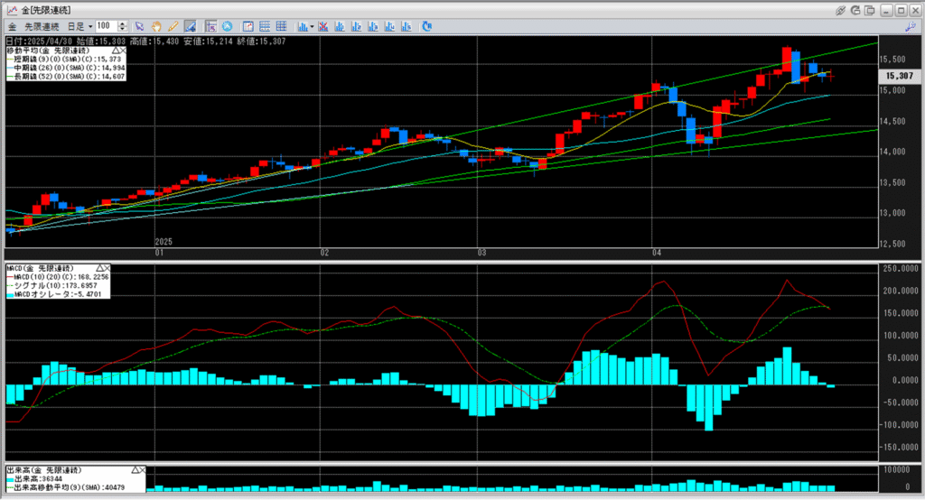 金白金鞘のチャートは、右肩上がりのチャートは維持しています。