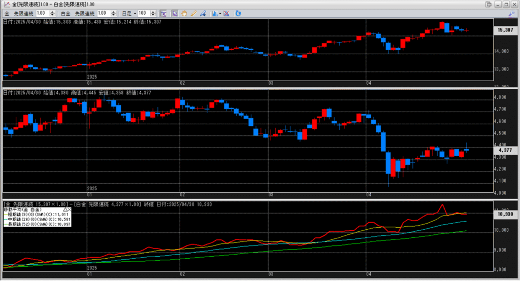 チャートを見ると、金白金鞘は拡大傾向のように見えます。