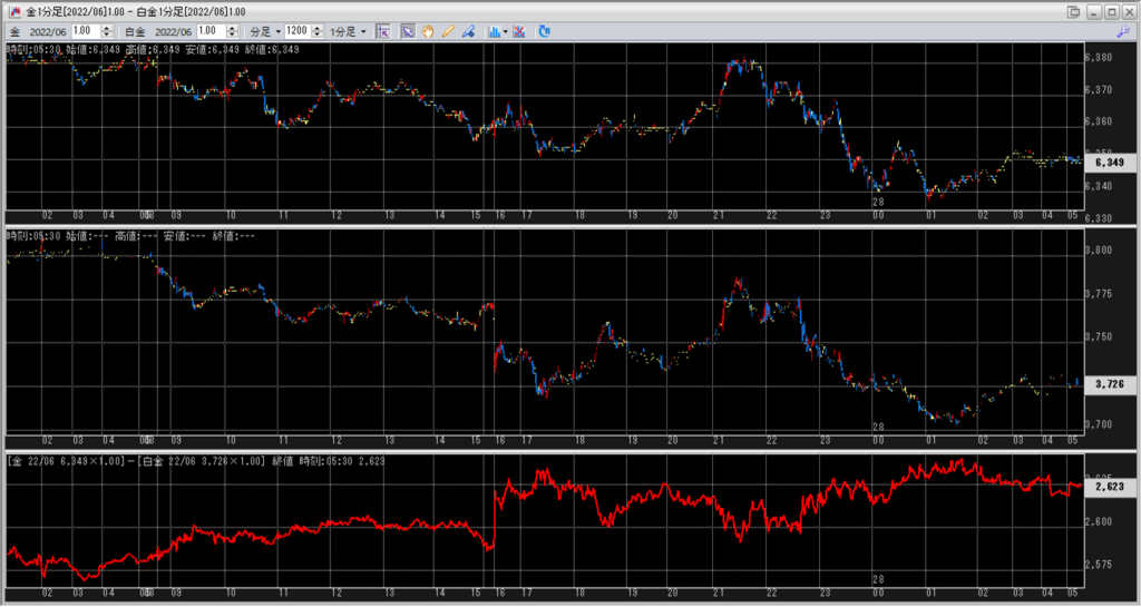 鞘拡大の仕掛け金買い1枚-白金売り2枚を増やしていくかどうか考えていきます。