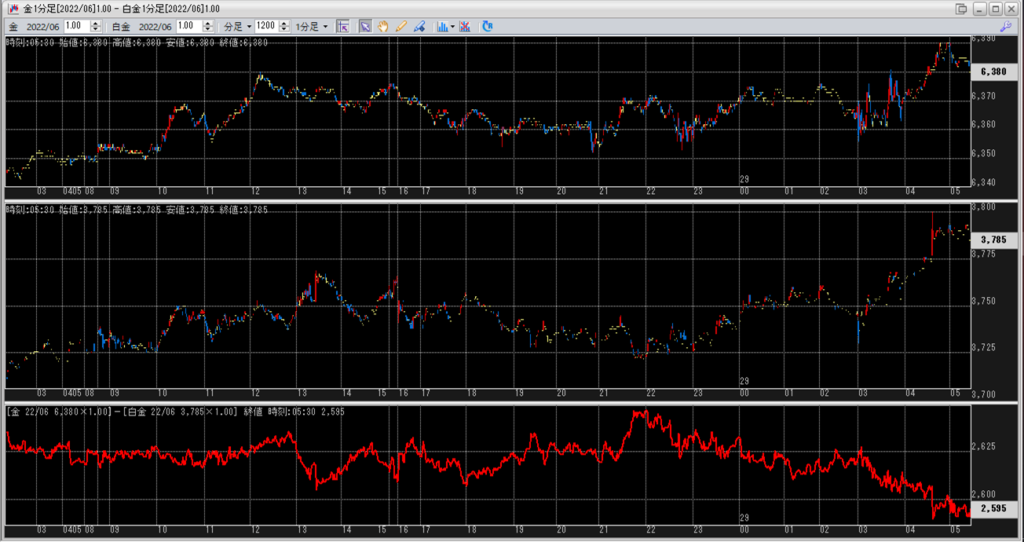 鞘拡大の仕掛け金買い1枚-白金売り2枚を増やしていくかどうか考えていきます。