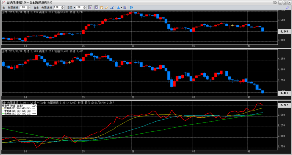 金白金の鞘の移動平均を見ていきます。
