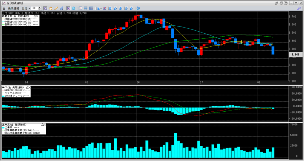 本日も金白金の鞘の値段が全ての移動平均線を超えています。