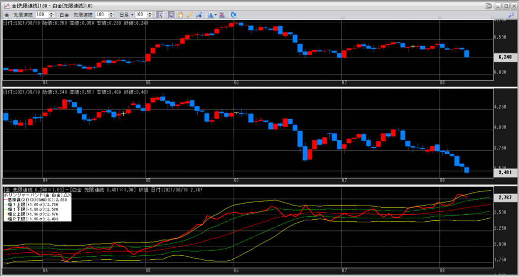 現在、金白金の鞘の値段は+2σと+1σの間、