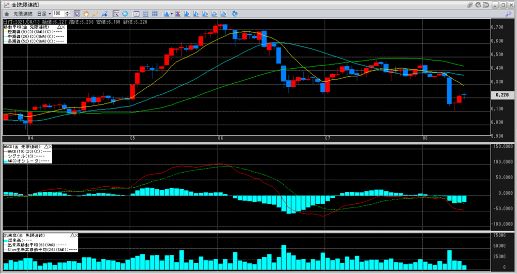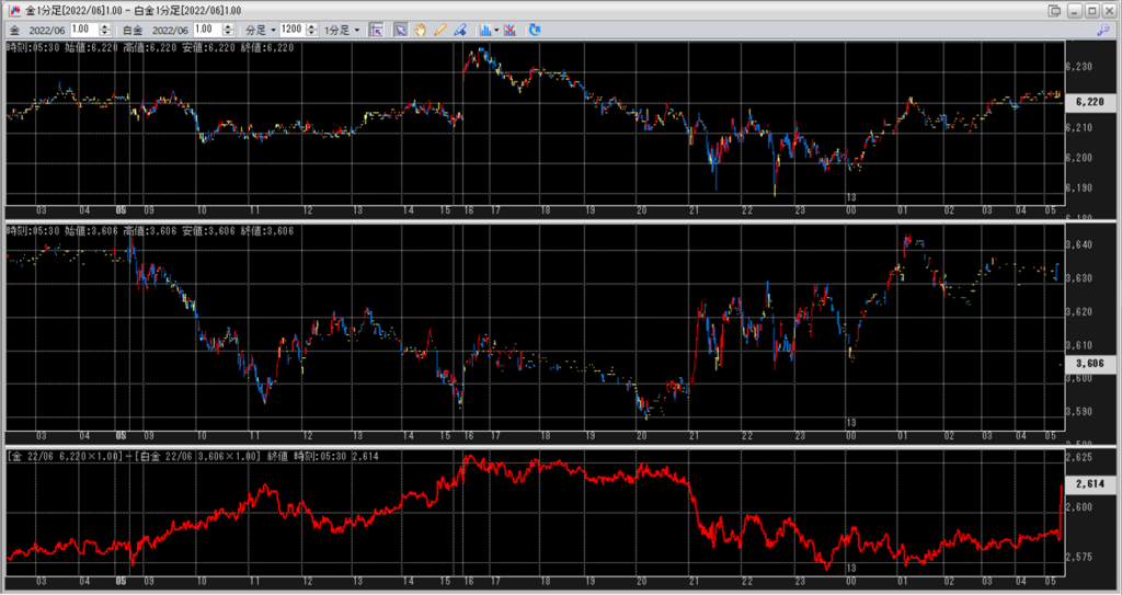 上:大阪取引所 金 2022年6月限 1分足