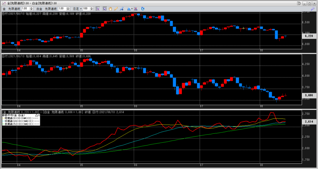 金白金の鞘の移動平均を見ていきます。