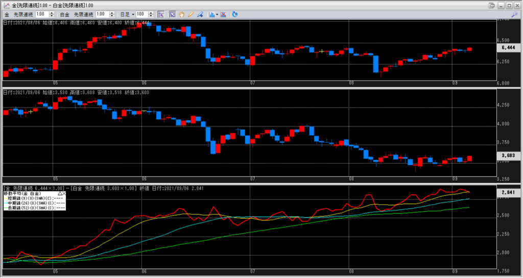 金白金の鞘の移動平均を見ていきます。