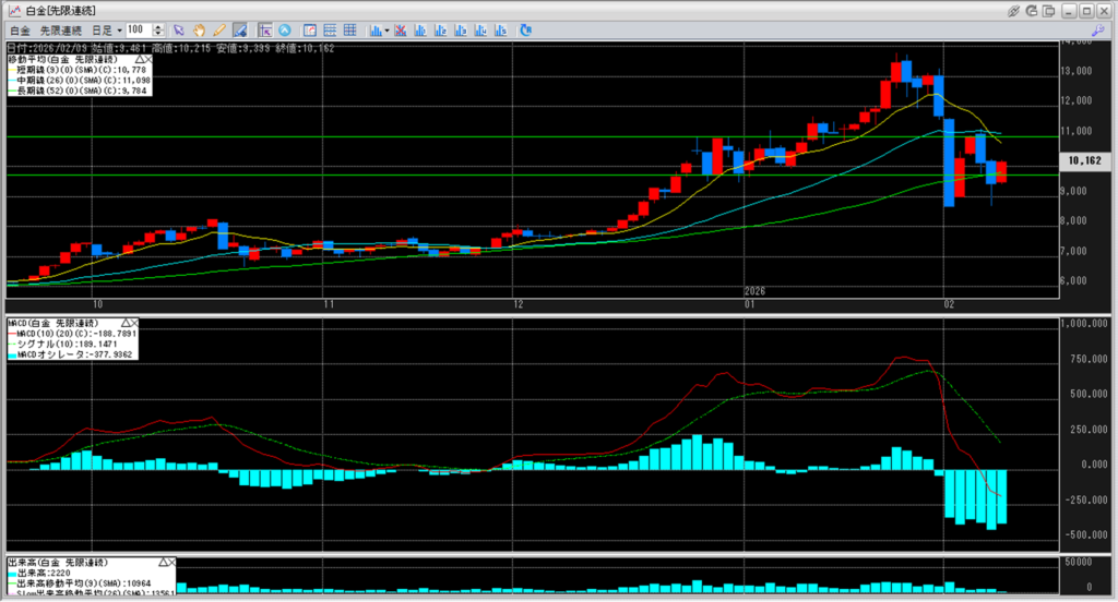 下記に金白金鞘の移動平均線のチャートを貼り付けています。