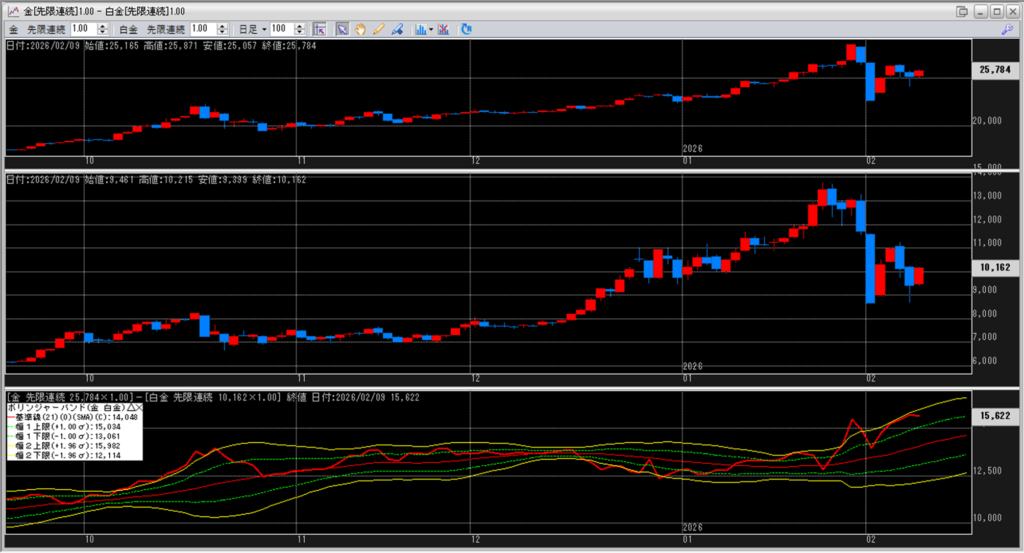 金白金の鞘をボリンジャーバンドで見ていきます。